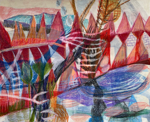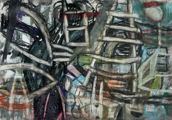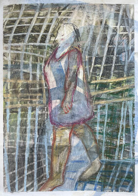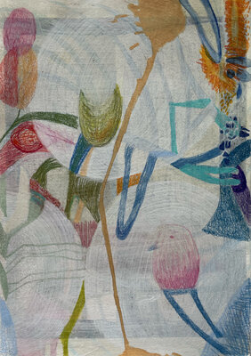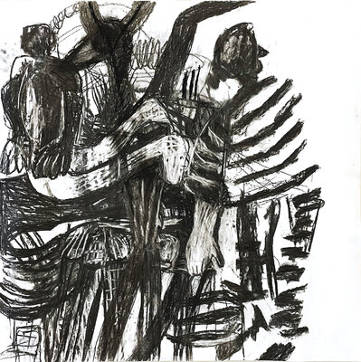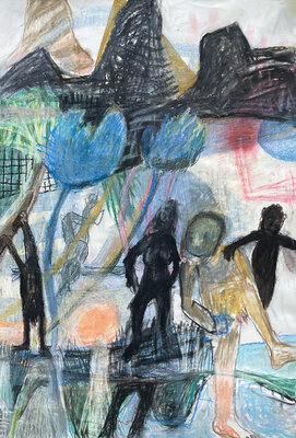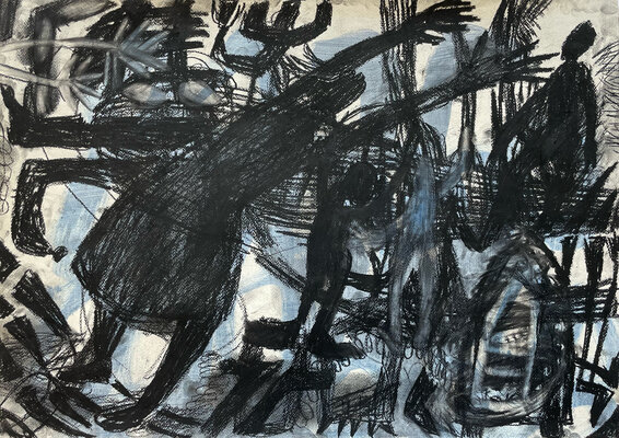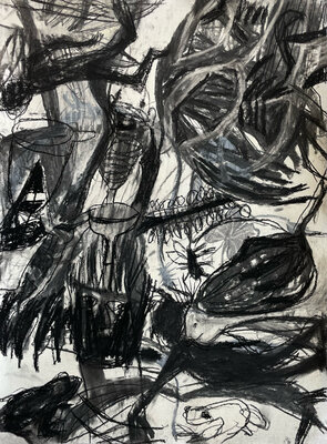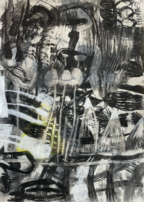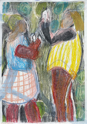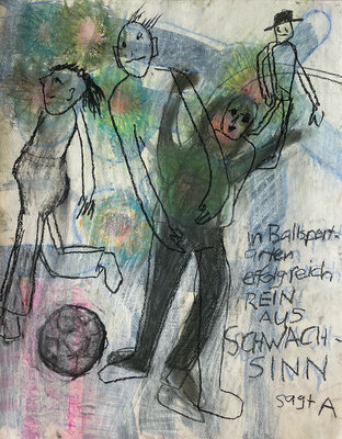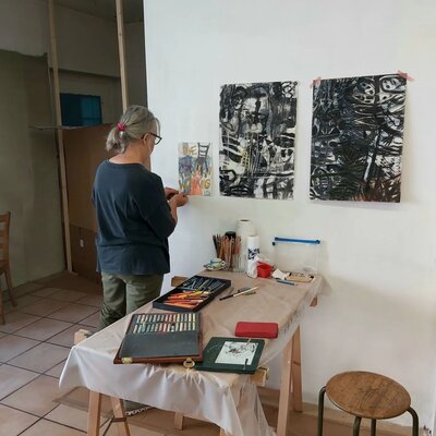 Entstanden ist zwar kein gemeinsames Projekt oder Resultat. Dafüraber waren wir zu viert in einem ständigen Rede - oder - ZuhörerInnenfluss. Das eigene Denken, Hirnen und Grübeln wurde unterdrückt und es entstanden - auf jeden Fall bei mir - eine Vielzahl von Zeichnungen "aus dem Bauch heraus".