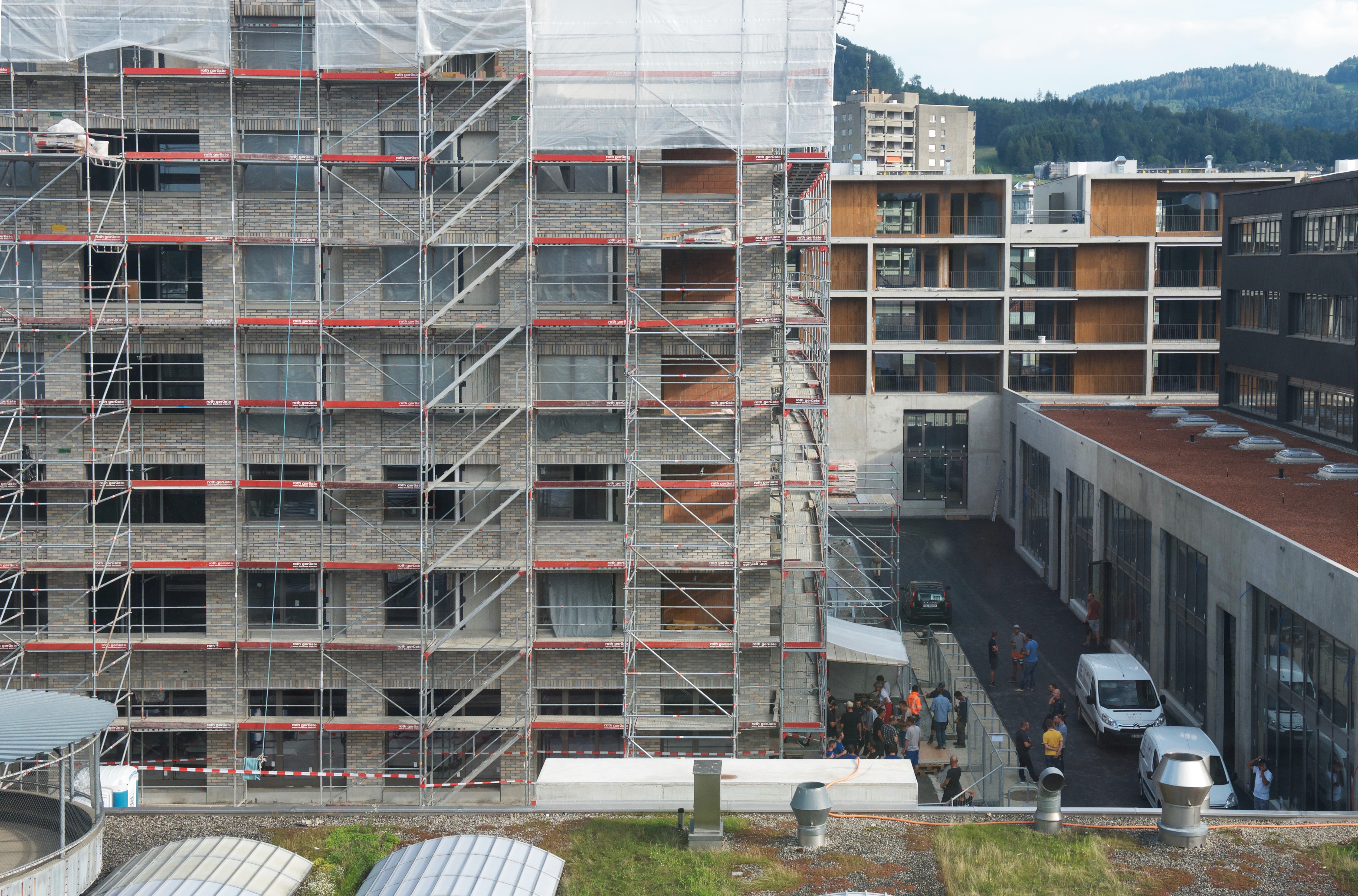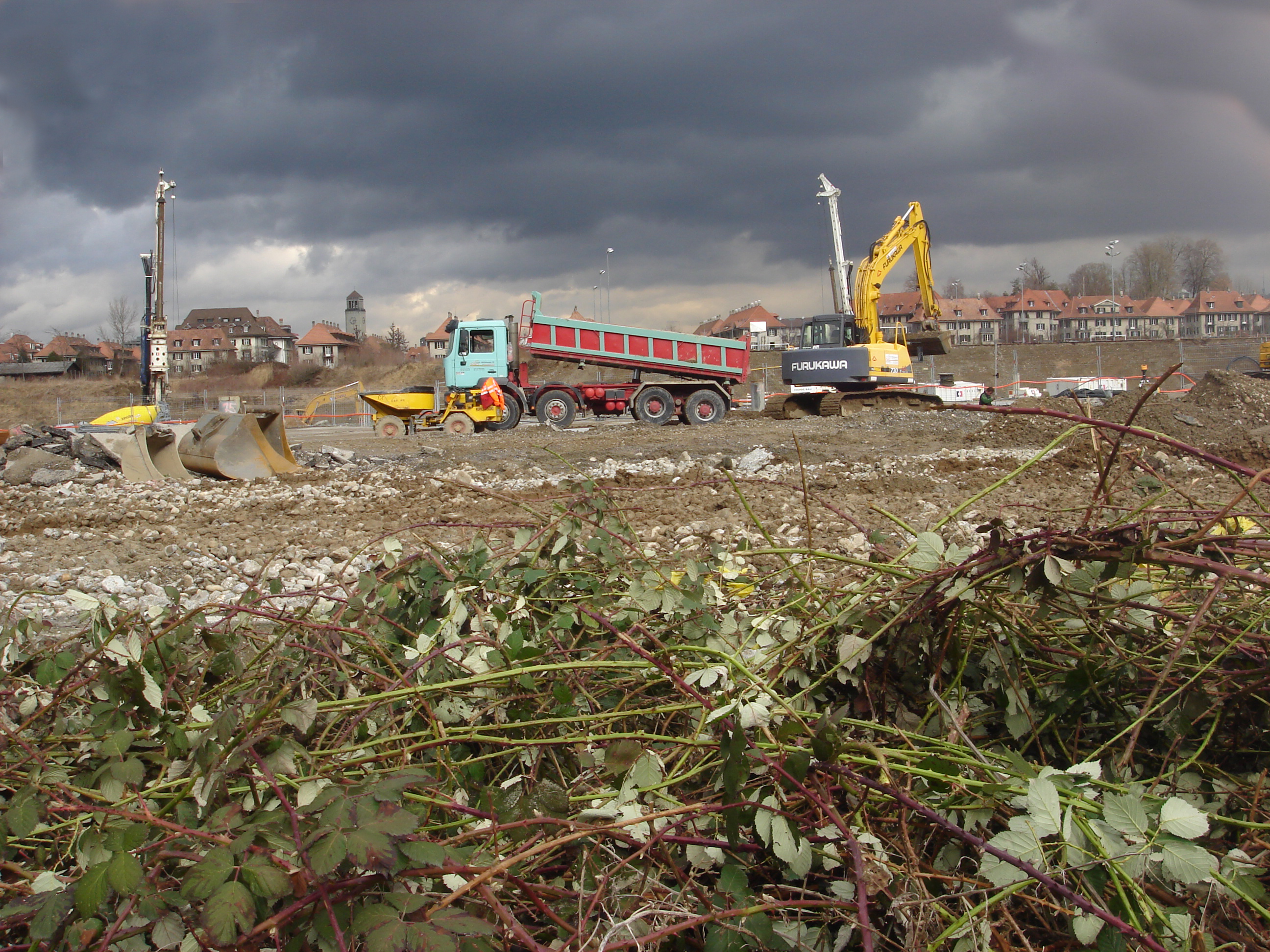 Baustellen Abbruchobjekt Mai 2005 Mai 1005 Dezember 2005 Mai 2005 / Im Hintergrund die ersten Hochhäuser von Bern. 2005 Februar 2006 Februar 2006 Februar 2006 September 2008 September 2012 Februar 2012 Aushub für die Turnhalle / September 2012 September 2012