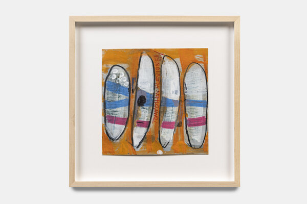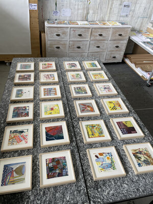 Wenn ich mich nach längerer Abwesenheit in meinem Miniatelier an den Arbeitstisch setze, fällt es mir nicht immer leicht, einen Anfang zu finden und ich fange an herumzuspielen. Oft stöbere ich in meinen Notitzbüchern, übernehme eine Skizze oder einen Gedanken oder lasse mich durch Fundgegenstände inspirieren, die ich ich seit 2014 in nächster Nähe des Ateliers sammle. Zum Aufwärmen beginne ich zu zeichnen. Dabei entstehen Miniaturen, die vom thematischen Arbeiten in meinem Atelier in den Vidmarhallen losgelöst sind.