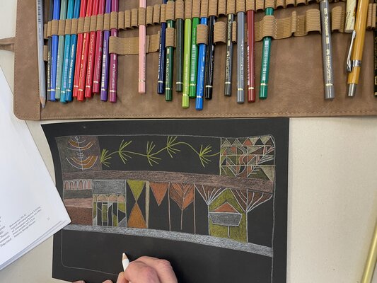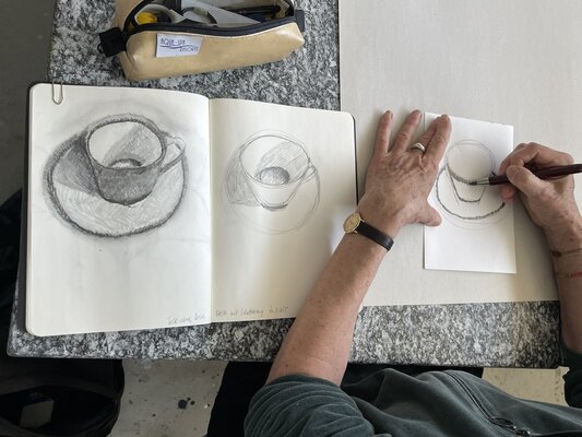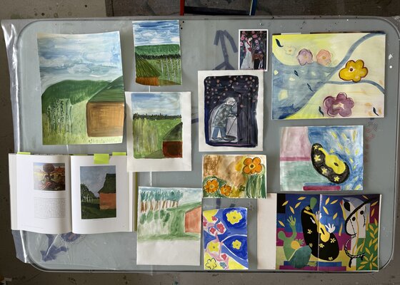 Wir lassen uns durch die Arbeit von Künstlerinnen und Künstlern, aber auch durch eigene Fotos oder Skizzen inspirieren. Vielerlei technische Fertigkeiten und praktische Tips fliessen dabei in den Unterricht ein.